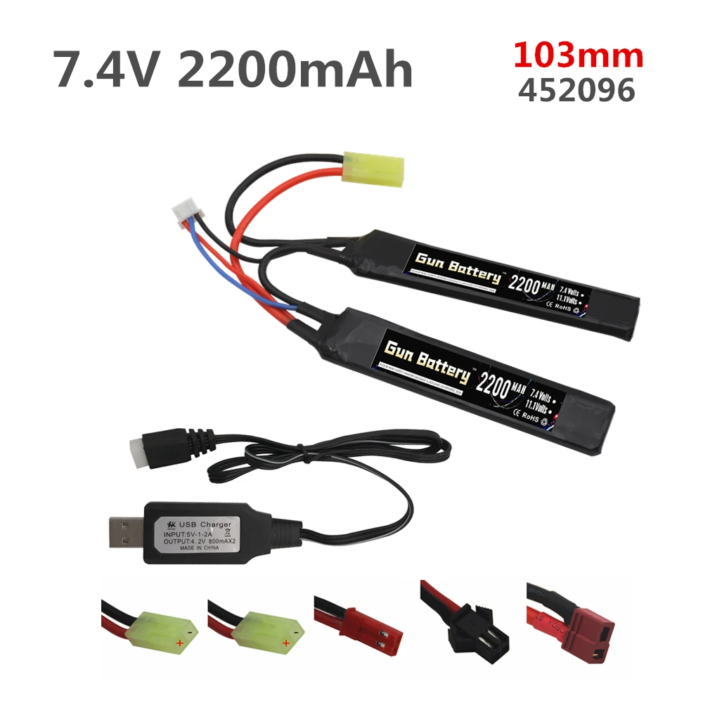 7,4 В 2200 мАч Lipo батарея для водяного пистолета 7,4 В батарея Разъемное соединение с зарядным устройством для страйкбола BB Воздушный пистолет электрические игрушки пистолеты