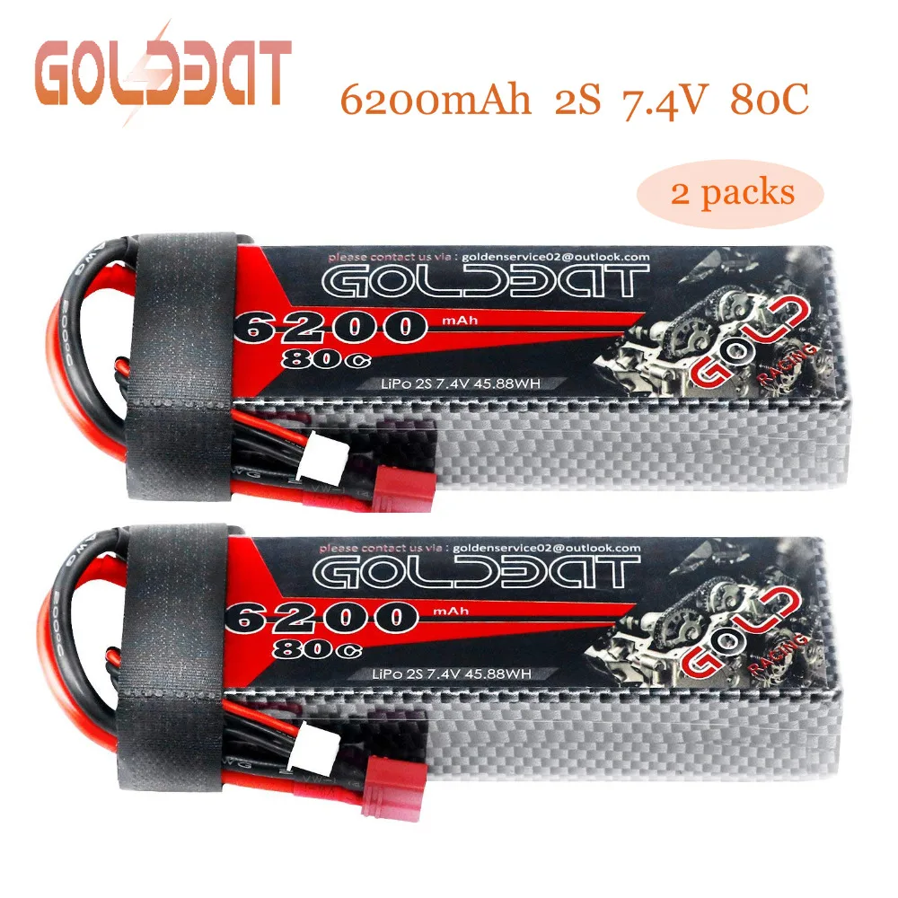2 единицы GOLDBAT 7,4 В литий-полимерный, Радиоуправляемый батарея 6200 мАч Lipo батарея 7,4 В 80C Lipo 2 s с разъем типа «deans» для RC автомобиль грузовой верт...
