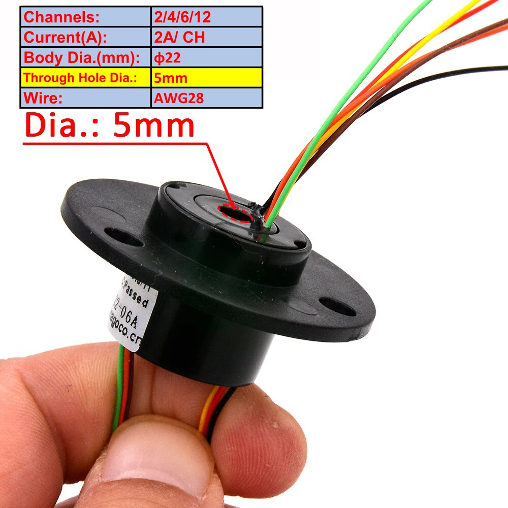 М контактными кольцами с отверстием Dia.5mm 6-канальный 2A электрическое скользящее кольцо полый вал