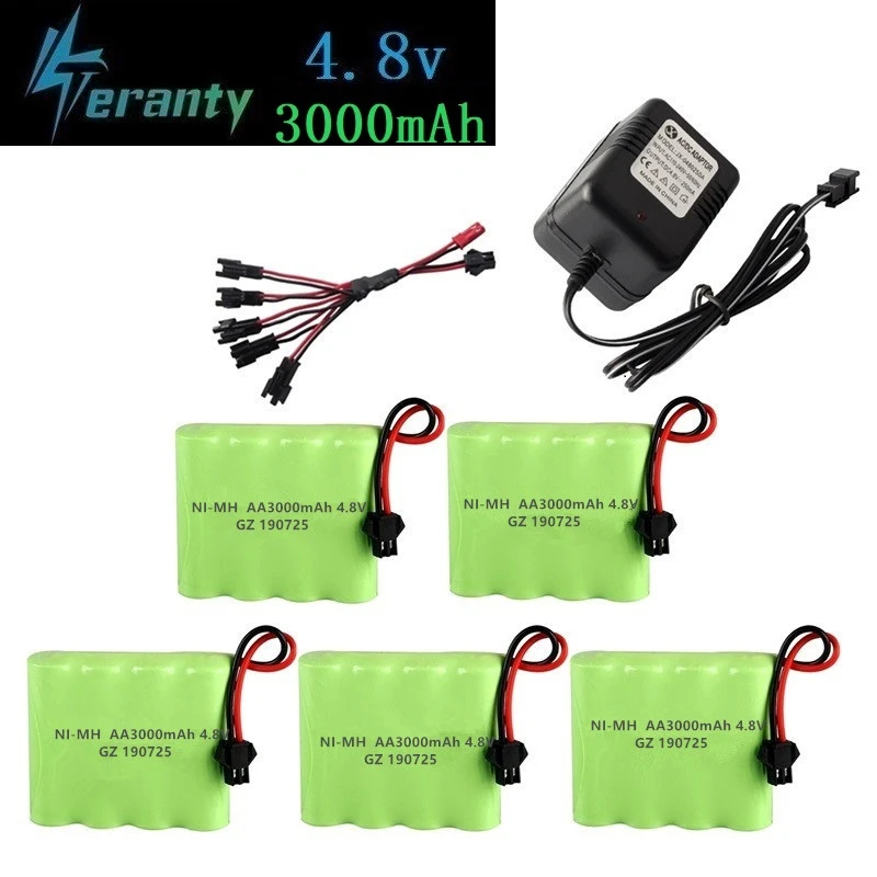 Аккумулятор и зарядное устройство 4,8 В 3000 мАч для радиоуправляемых автомобилей, роботов, танков, пистолетов, лодок, аккумулятор NiMH 4,8 В, Aa 2400 мА/ч, перезаряжаемый аккумулятор 4,8 В