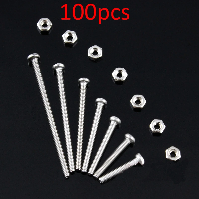 100 шт. M2 6 мм/8 мм/10 мм/12 мм/16 мм/20 мм/25 мм/30 мм/35 мм из нержавеющей стали с круглой головкой винты гайки крепеж для RC Tamiya 4WD автомобиля запчасти