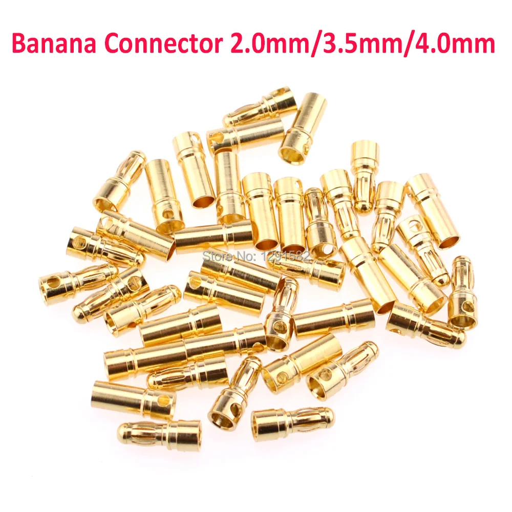 50 пар, 2,0 мм, 3,5 мм, 4,0 ММ, 2,0, 3,5, 4,0, Золотая пуля, разъем типа «банан», Штекерный разъем для ESC Motor Lipo RC, часть батареи