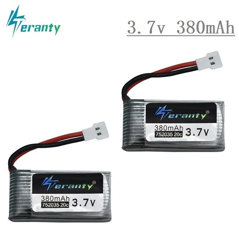 3,7 V 380 mAh 752035 Lipo батарея запасная Замена для Hubsan X4 H107 H107L H107D JD385 JD388 RC самолет мульти-роторы 2 шт