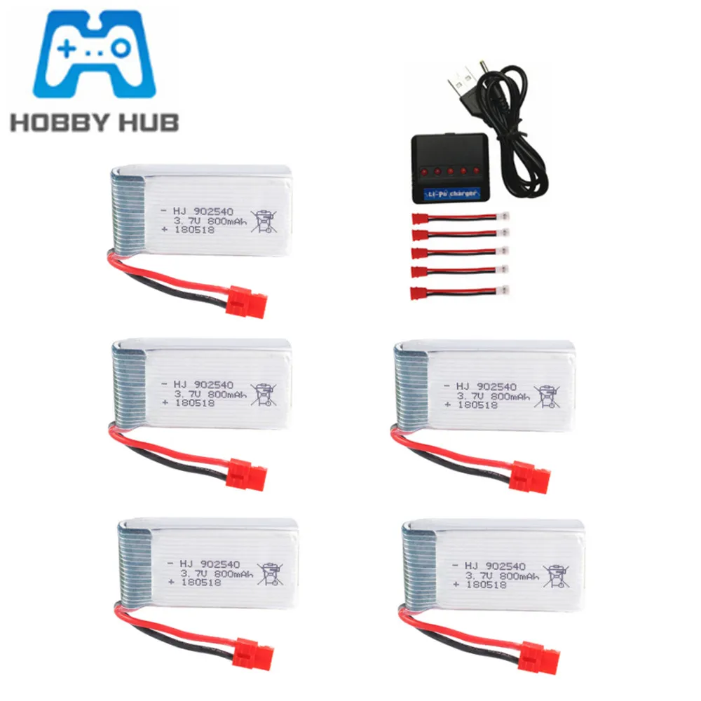 3,7 V 800mAh Lipo батарея + 5 в 1 зарядное устройство набор для Syma X5 X5HC X5HW X5UW X5UC RC Quadcopter Drone запасная часть 902540 3,7 v батарея