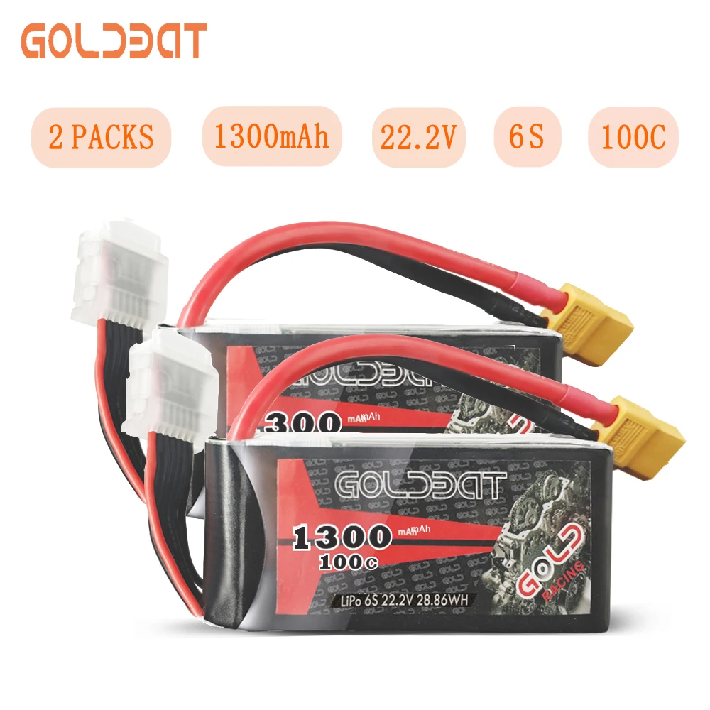 2 единицы GOLDBAT Lipo Батарея 1300 mAh 6 S lipo дроны Батарея 22,2 V 100C пакет с XT60 разъем для дроны Racing FPV шоссейные велосипеды