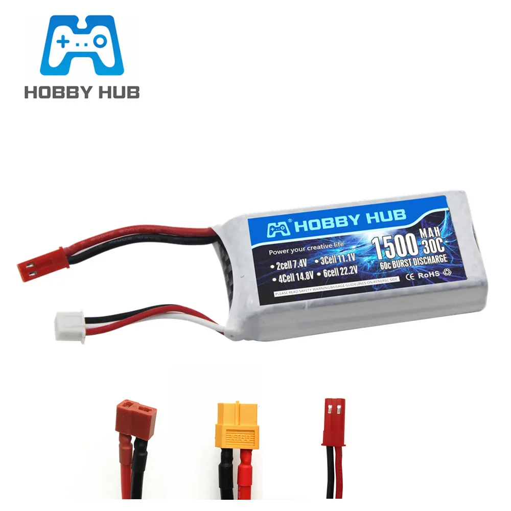 HOBBY HUB 7,4 V 1500mAh 30C Lipo батарея для RC Halicopter части 2s литиевая батарея 7,4 v батарея для самолетов с разъемом JST/T/XT60