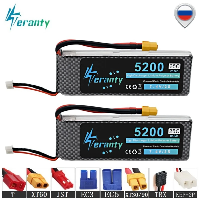 Высокая мощность 7,4 V 5200 mAh Lipo батарея для RC автомобилей Робот самолетов вертолет запчасти 2 s литиевая батарея 7,4 v RC Дрон батарея 2 шт