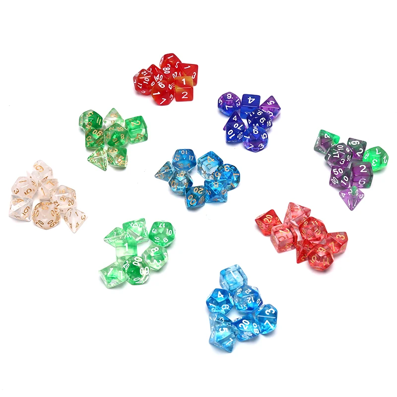 7 шт./компл. прозрачные акриловые кости в комплекте в разных расцветках, 4, 6, 8, 10, 12, 20 кубика TRPG игра любителей ролевых игр