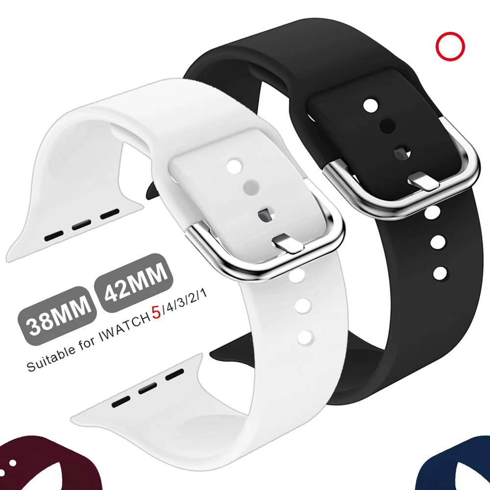 Для Apple Watch Series 5 4 3 2 силиконовый ремешок Браслет 38 мм 40 мм 42 мм 44 мм резиновый ремешок для iwatch 4 3 2 1 браслет
