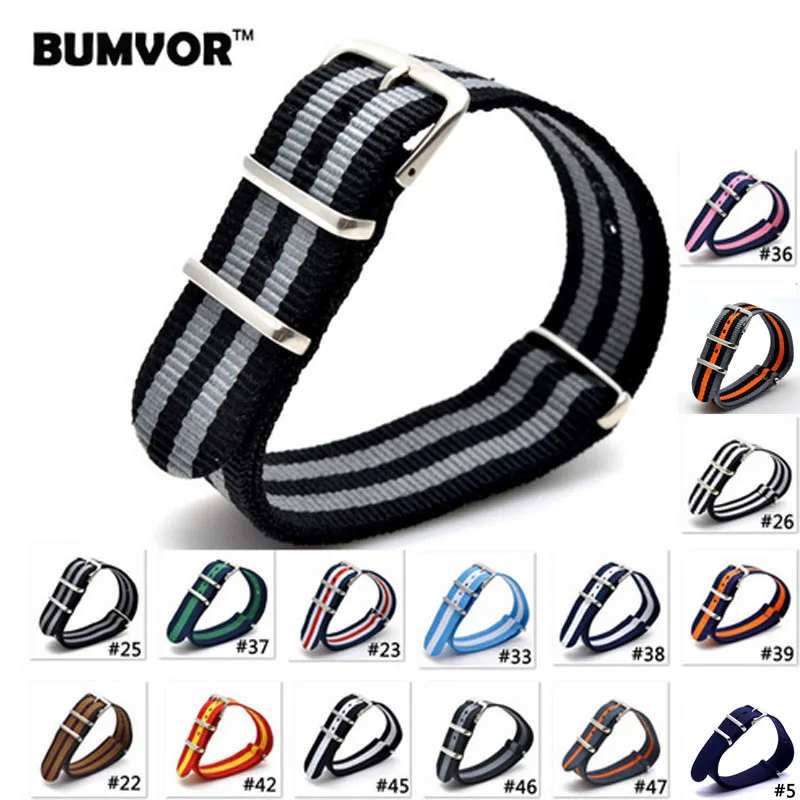 BUMVOR Для мужчин часы ремешок ремни 16 18 22 24 мм оранжевый браслет НАТО ткань нейлон Ремешки ремень Группы Пряжка ремень