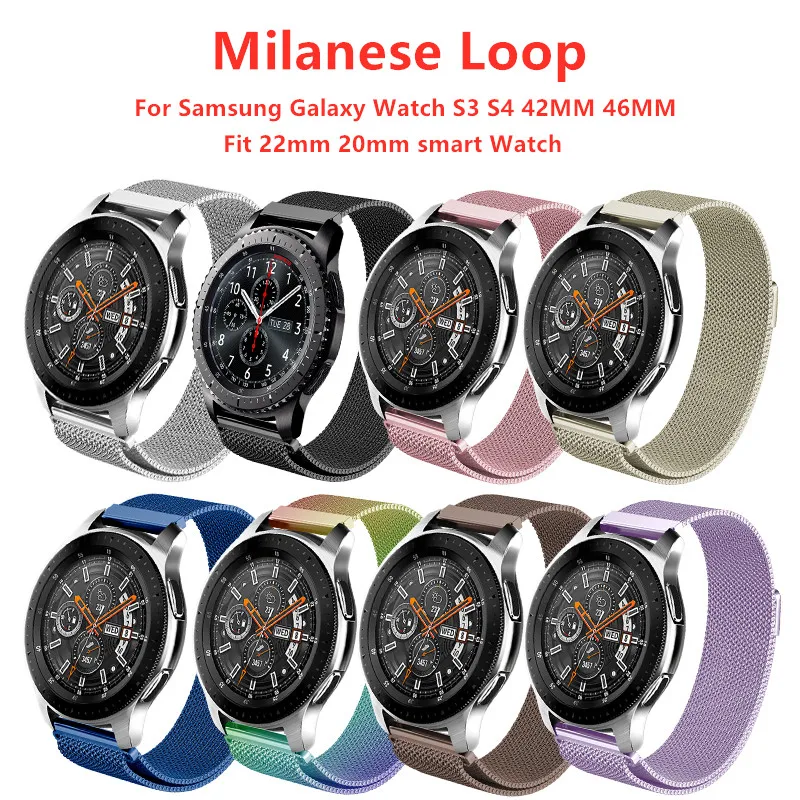 20 мм 22 мм браслет из нержавеющей стали для Samsung Galaxy S4 часы Миланский Браслет на петле металлический магнитный ремешок для часов