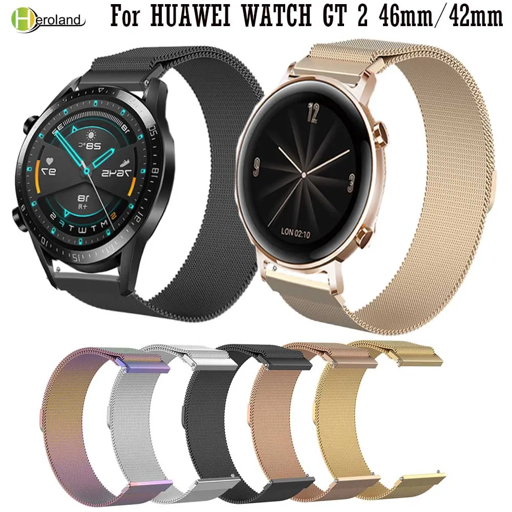 20 мм 22 мм ремешок для часов для HUAWEI Watch GT 2 42 мм 46 мм Миланская Петля Браслет Из Нержавеющей Стали Быстросъемный ремешок для часов Новый