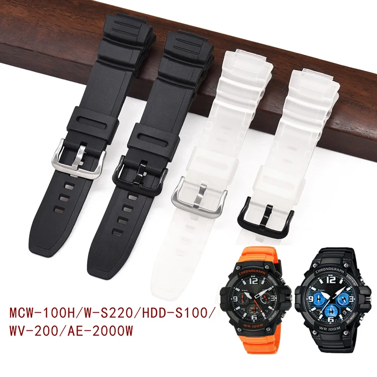 Ремешок из смолы для Casio MCW-100H W-S220 16 мм Мужская спортивная водонепроницаемая Замена ТПУ браслет часы черный оранжевый