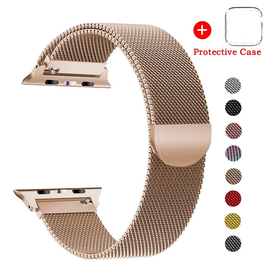 Чехол + Миланский ремешок из нержавеющей стали браслет для Apple Watch Band 44 мм 40 мм Миланский ремешок для Apple Watch Band 42 мм 38 мм