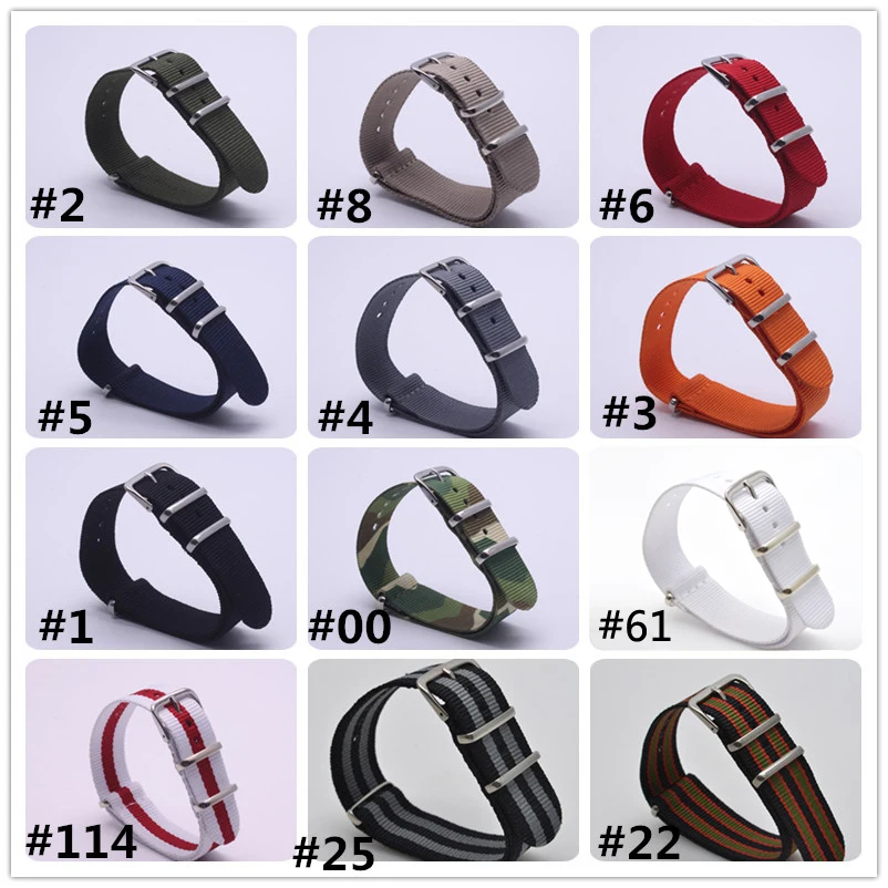 Оптовая продажа в полоску Камбо однотонные черные часы 18 20 22 24 мм Multi цвет армии Военная Униформа НАТО ткань нейлоновые ремешки для часов Рем...