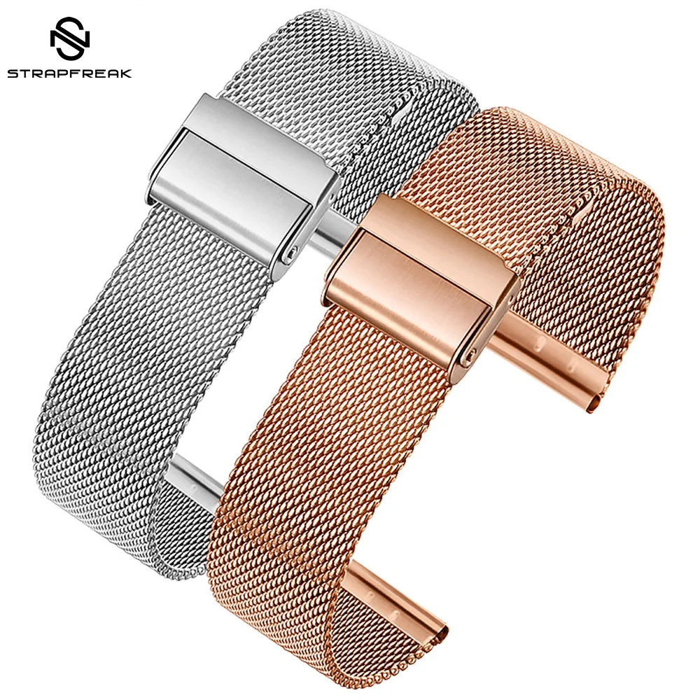 12 мм, 14 мм, 16 мм, 18 мм, 20 мм, 22 мм, Миланский ремешок для часов, универсальный металлический ремешок из нержавеющей стали, браслет, черный, розов...