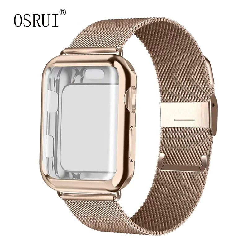 Миланская петля ремешок с чехлом для Apple Watch серии 5/4/3/2 38 мм 42 мм 40 мм 44 мм ремешок из нержавеющей стали браслет для iwatch