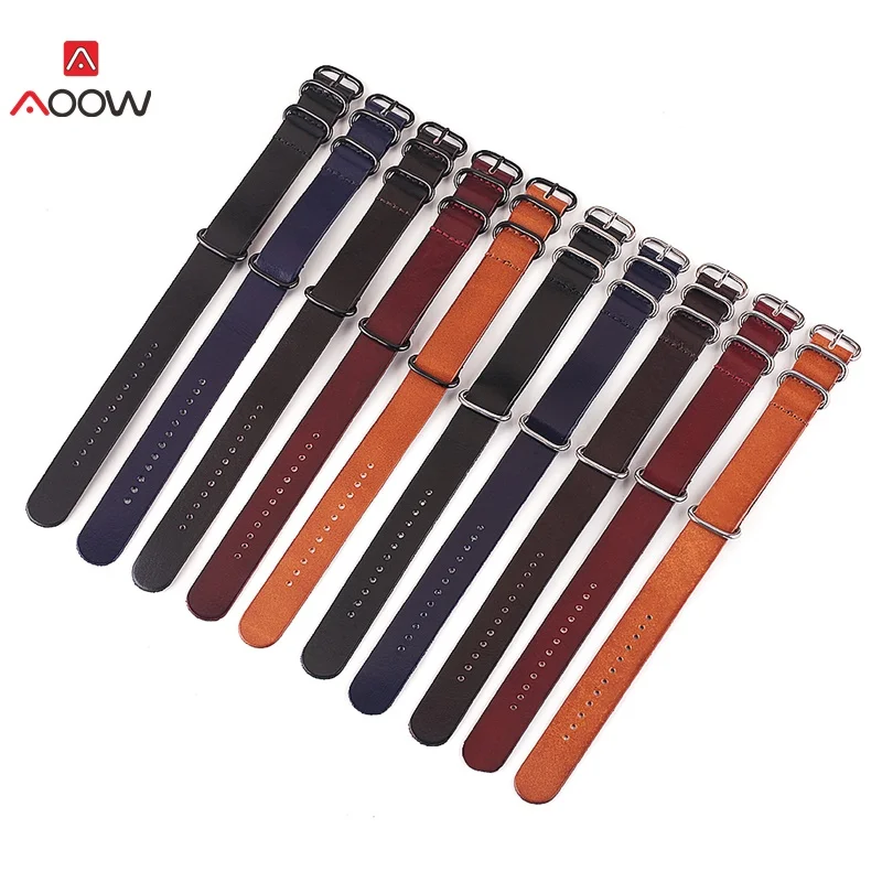 Кожаный ремешок AOOW Nato, темно-коричневый ремешок для часов Zulu, сменный ремешок для часов 14 мм 16 мм 18 20 22 мм 24 мм, браслет для часов