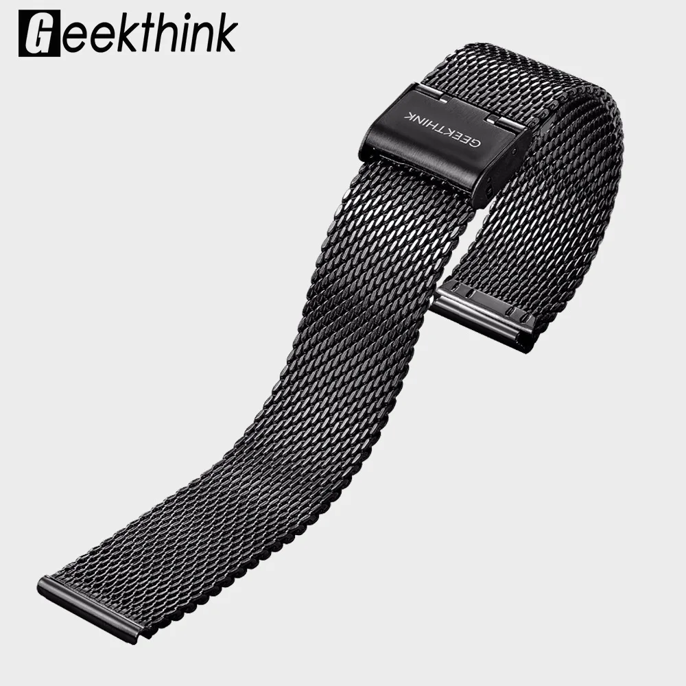 20 мм универсальный размер полный сетка из нержавеющей стали ремешок для часов серебристый черный розовое золото