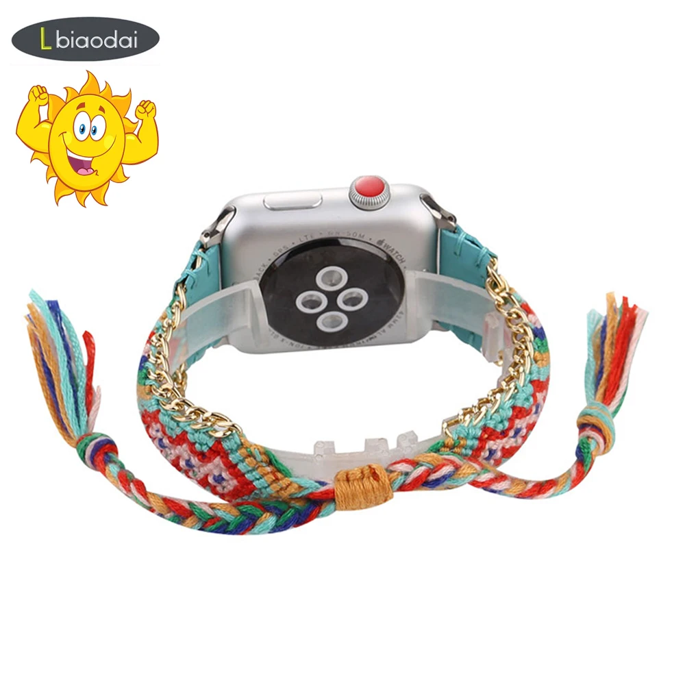 Плетеный веревочный ремешок для apple watch 4 band 44 мм 40 мм iwatch ремешок 42 мм 38 мм браслет ремень ручной работы часы ремешки серии 4 3 21