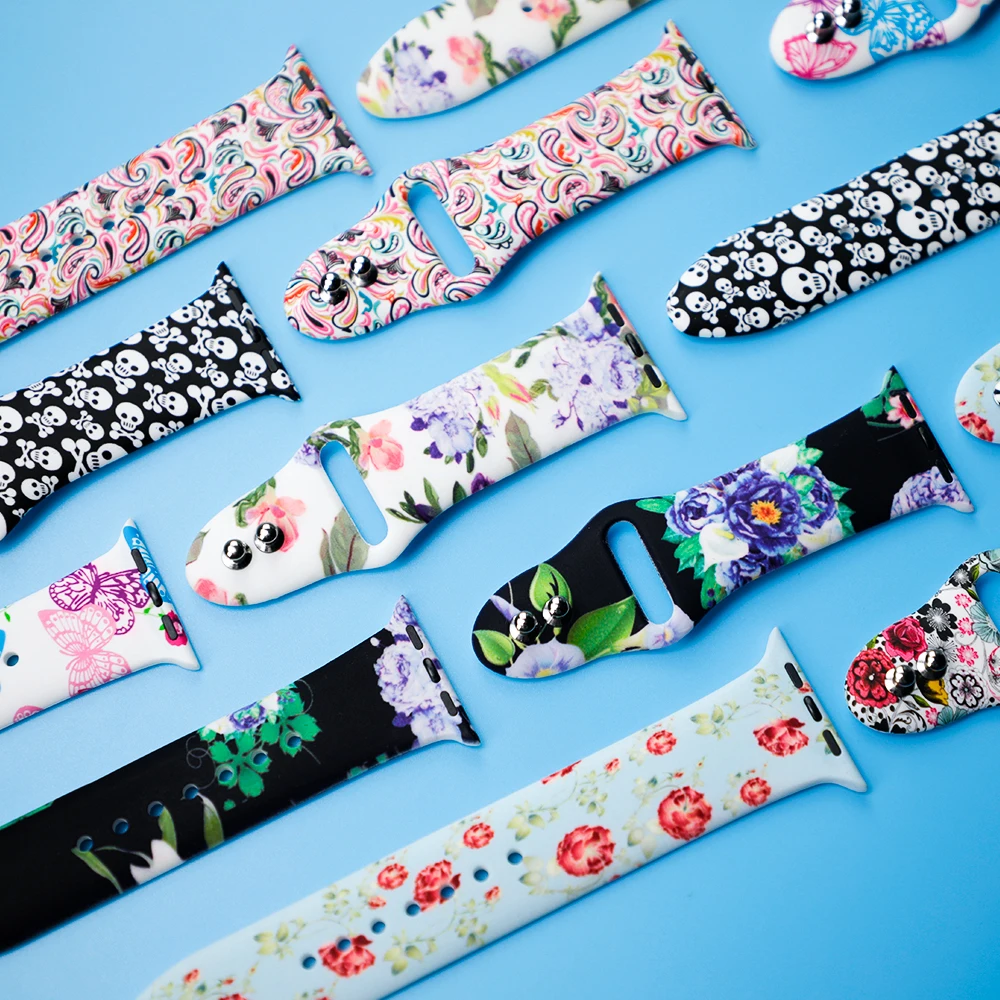 Ремешок с цветами для часов apple watch 4 band 44 мм 40 мм correa iwatch band 42 мм 38 мм браслет силиконовый apple watch 4 3 2 1 Аксессуары для часов