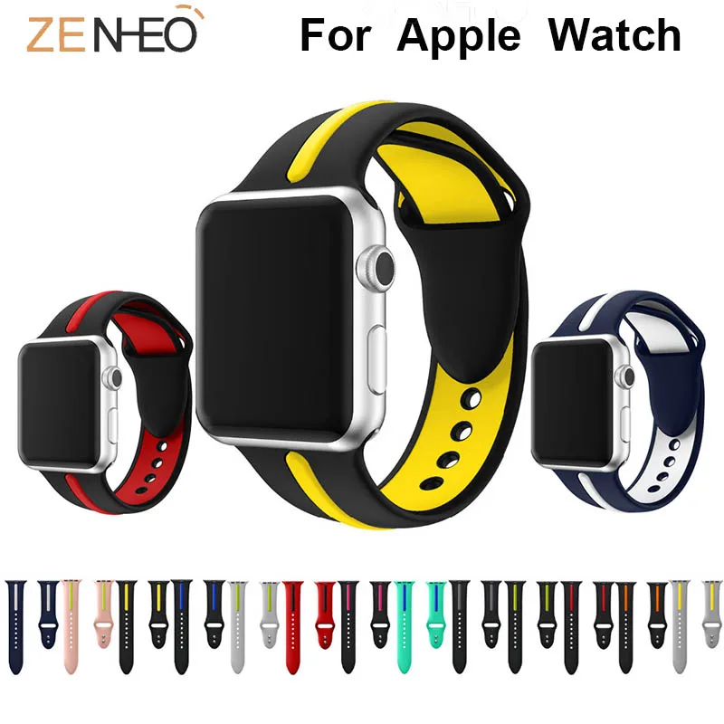 Силиконовый ремешок для Apple Watch Series 4/2/1 двухтональный ремешок для часов 42 мм 38 мм 44 мм 40 мм сменный Браслет ремешок для часов