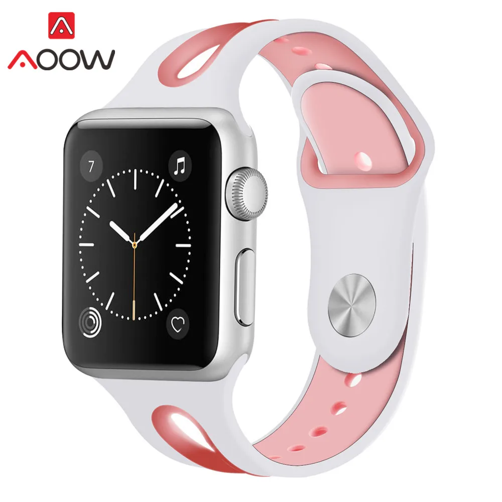 Силиконовый ремешок для Apple Watch 38 мм 42 дышащая для мужчин женщин Спортивная Резина заменить браслет ремешок Ремешок для iwatch 1 2 3 4
