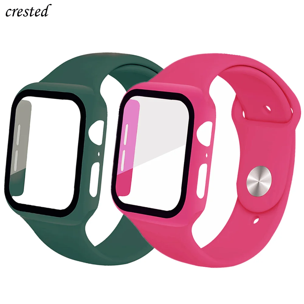 Стекло + чехол + ремешок для Apple Watch Band 44 мм 40 мм iWatch band 42 мм 38 мм силиконовый бампер + Браслет apple watch 5 4 3 2 1 38 42 44 мм