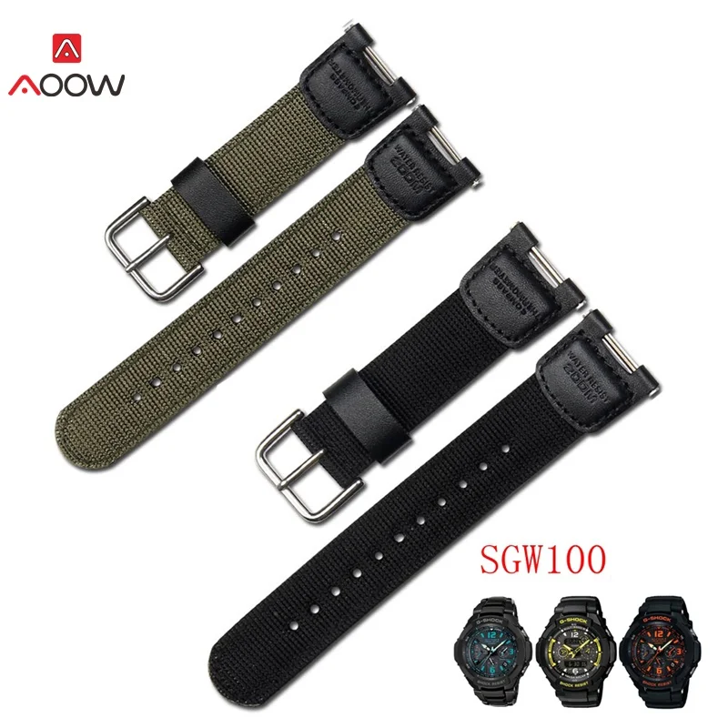 AOOW Военный Зеленый Нейлоновый ремешок для часов Casio SGW-100 SGW100 водонепроницаемый ремешок Замена для вождения спортивные часы аксессуары