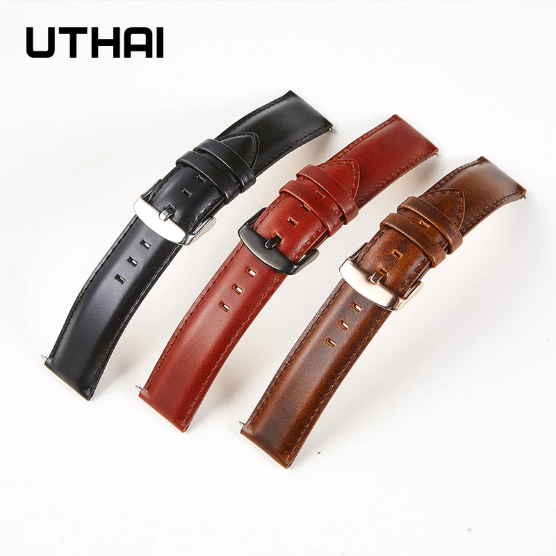 UTHAI Ремешки для наручных часов 22 мм кожаный ремешок для часов быстросъемный пружинный ремешок 20 мм ремешок для часов Samsung galaxy watch 42 мм