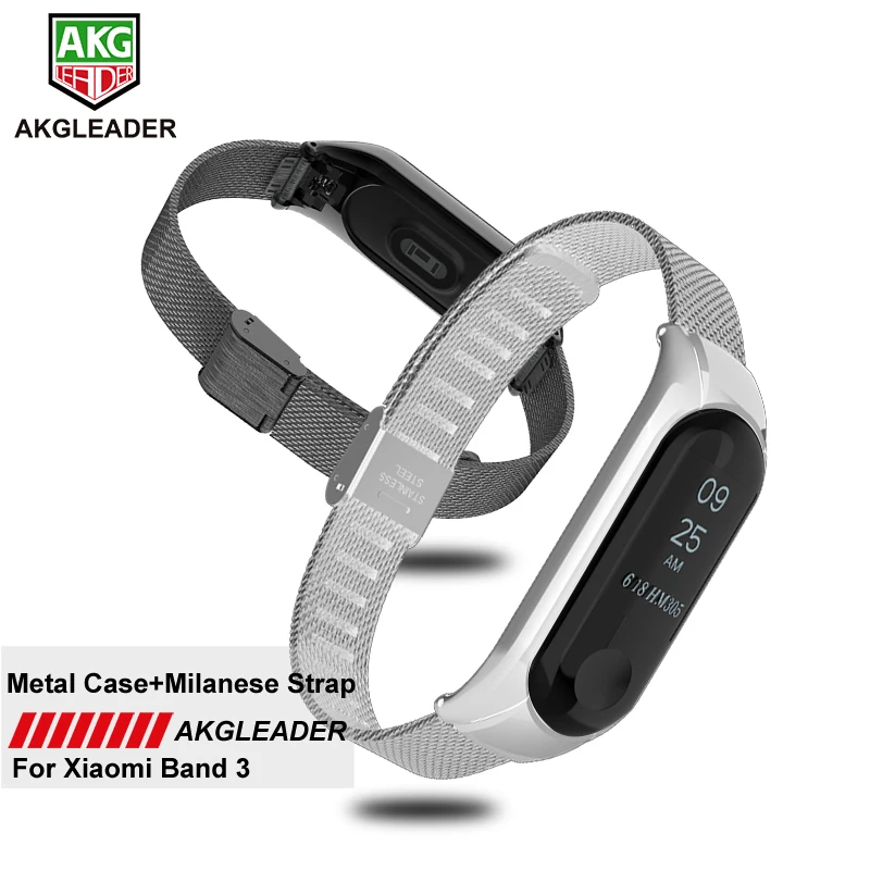 AKGLEADER mi Band 3 ремешок металлический Безвинтовой нержавеющая сталь для Xiaomi mi Band 2 3 браслеты Pulseira mi band 3