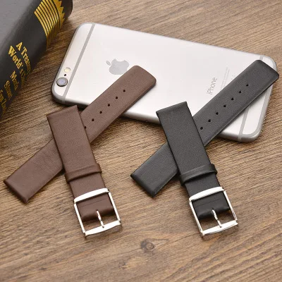 18 мм 20 мм натуральная телячья кожа часы ремешок для женщин мужчин Гладкий мягкий ультра-тонкий ремень для часов браслет чёрный; коричневый ...