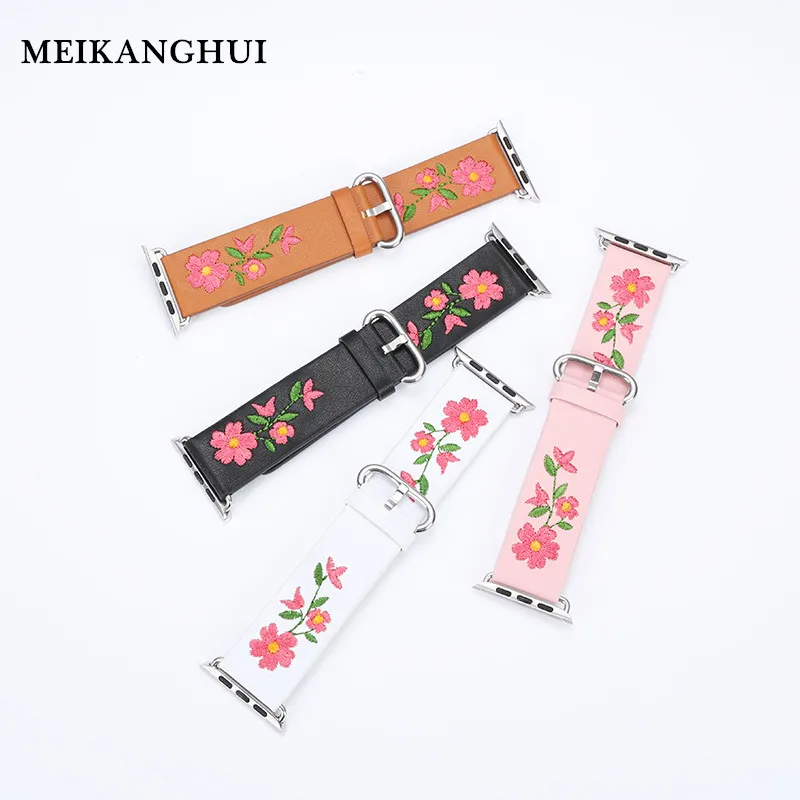 Замена Apple Watch кожаный ремешок 38 мм 42 мм 1 2 3 серии красный цветок вышивка дамы мужские Rep мужской запасной браслет ремешок