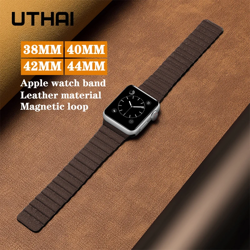Кожаный ремешок UTHAI B09 для iWatch 3/2/1 38 мм 42 мм магнитный ремешок для Apple Watch 40 мм 44 мм для iWatch 4/5