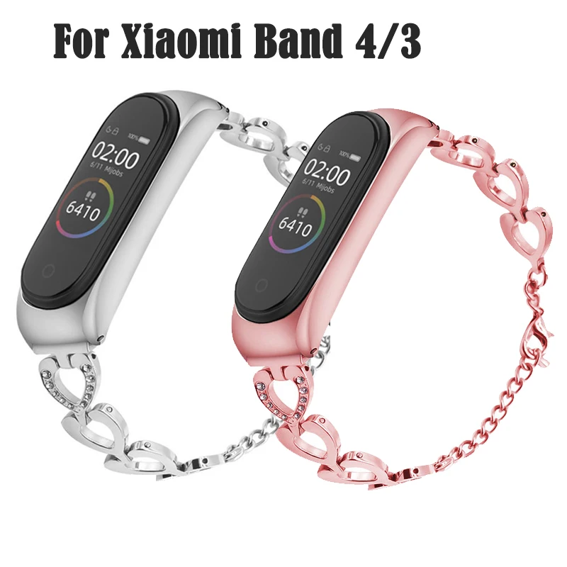 Ремешок на запястье для Xiaomi Mi, 4 ремешка, Смарт-часы, заменяющие мужские Т-часы, xi Band, 3 бриллианта, нержавеющая сталь, женский, мужской спортив...