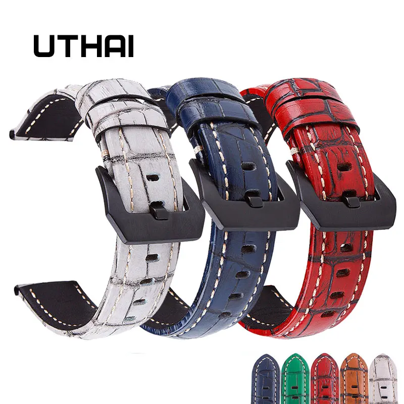 Ремешок для часов UTHAI P17 из натуральной кожи 20 мм 22 мм 24 мм 26 мм Классический ретро
