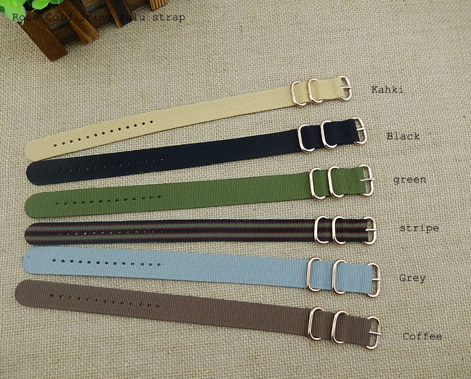 Ремень для часов Kahki, черный, зеленый, серый, кофейный, цветной, с застежкой из розового золота, 18, 20, 22 мм