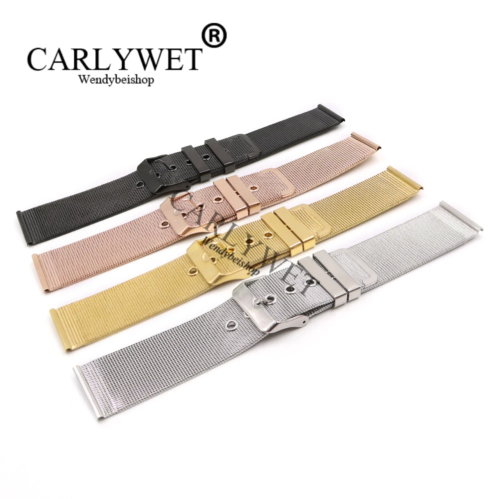 Сменная сетка CARLYWET для наручных часов, 20, 22 мм, серебристый, черный, розовое золото, нержавеющая сталь, браслет с полированной пряжкой