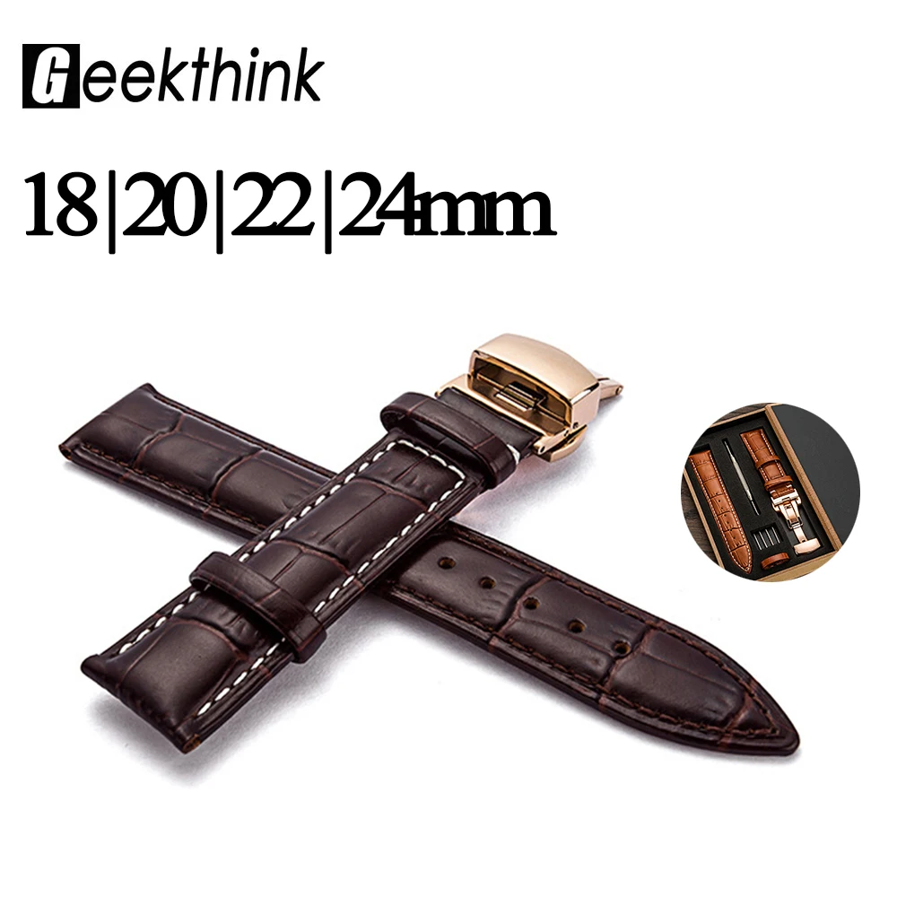 Ремешок для часов из кожи аллигатора, черный, темно-коричневый, красный, розовый, белый, классический, 12, 14, 16, 18, 20, 22, 24 мм