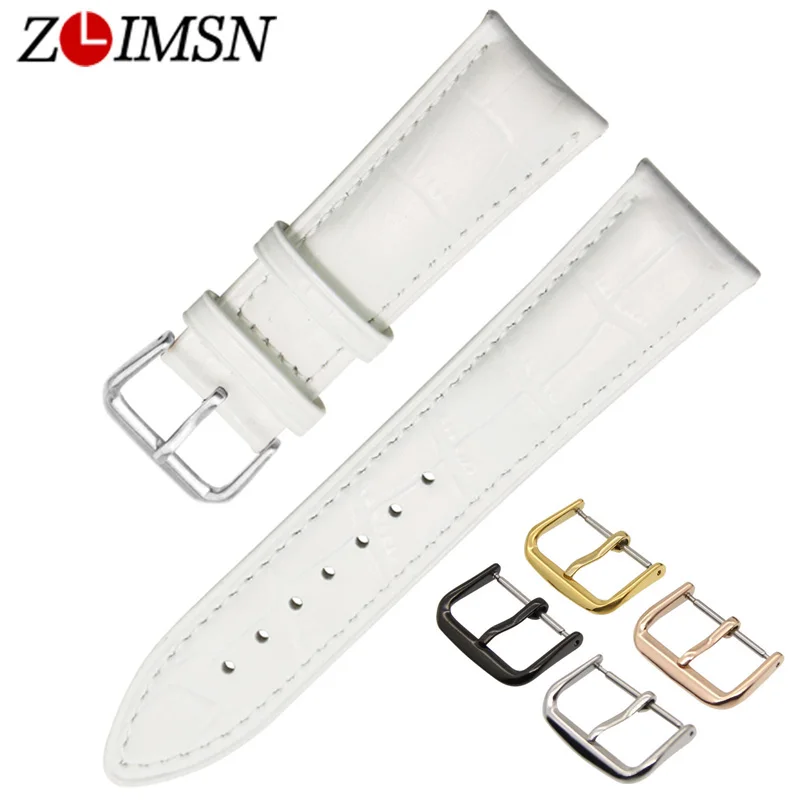 ZLIMSN белый кожаный ремешок 16 18 20 22 мм Нержавеющая сталь часы Пряжка Четыре цвета застежка для дамы мужские ремешки