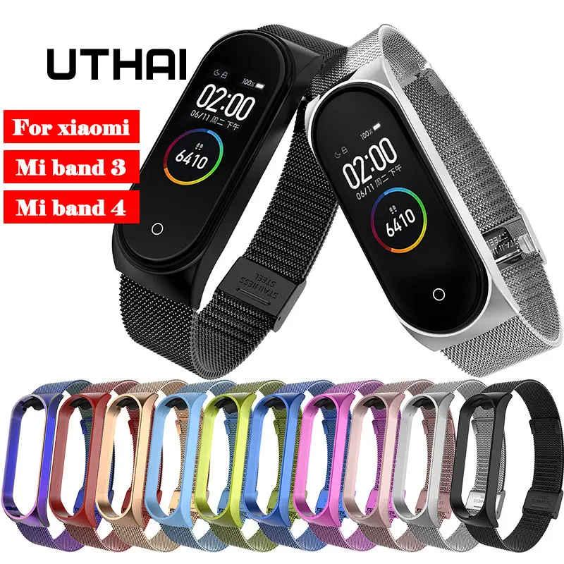 UTHAI S15 металлический ремешок из нержавеющей стали для Xiaomi mi Band 4 ремешок на запястье для Xiaomi mi band 3 4 браслет для mi Band 4
