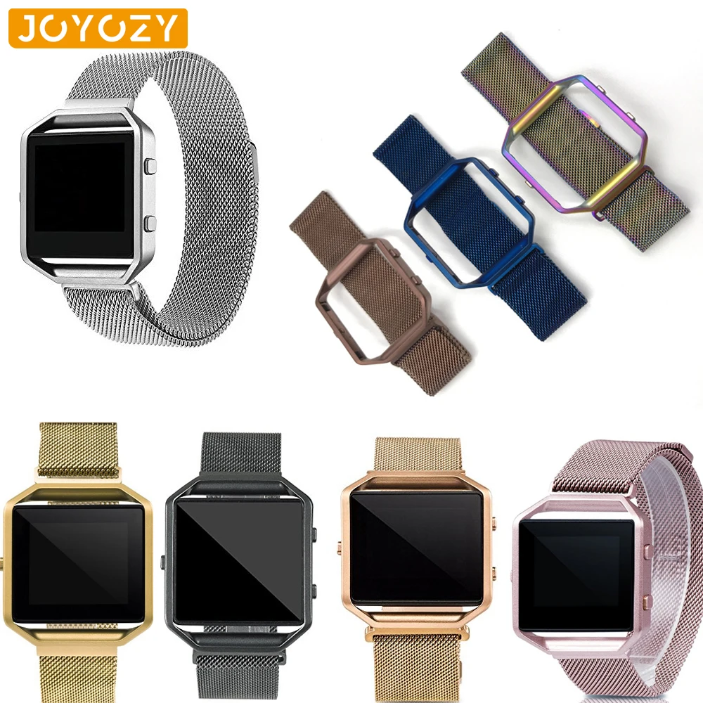Мм 23 мм Milanese Loop ремешок + металлический каркас для Fitbit Blaze нержавеющая сталь часы ремешок магнитный замок браслет черный розовое золото сере...
