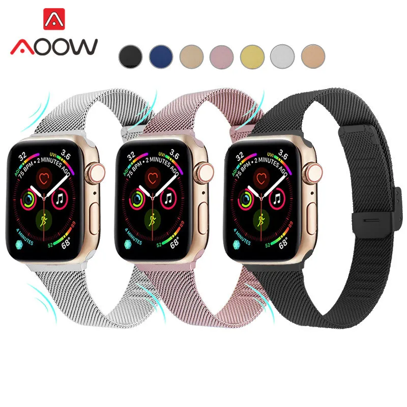 Тонкий Миланский ремешок-петля для Apple Watch 5, 4, 38 мм, 42 мм, 40 мм, 44 мм, браслет из нержавеющей стали для часов iWatch Series 3, 2, 1