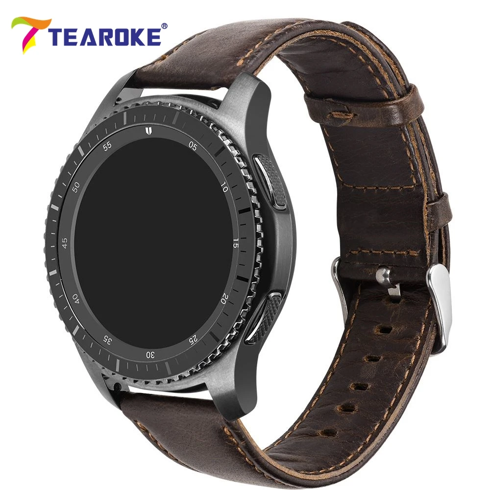 TEAROKE Crazy Horse Leather Watchband for Samsung Gear S2 S3 Classic Dark Brown Smart Watch Replacement Bracelet Band Strap