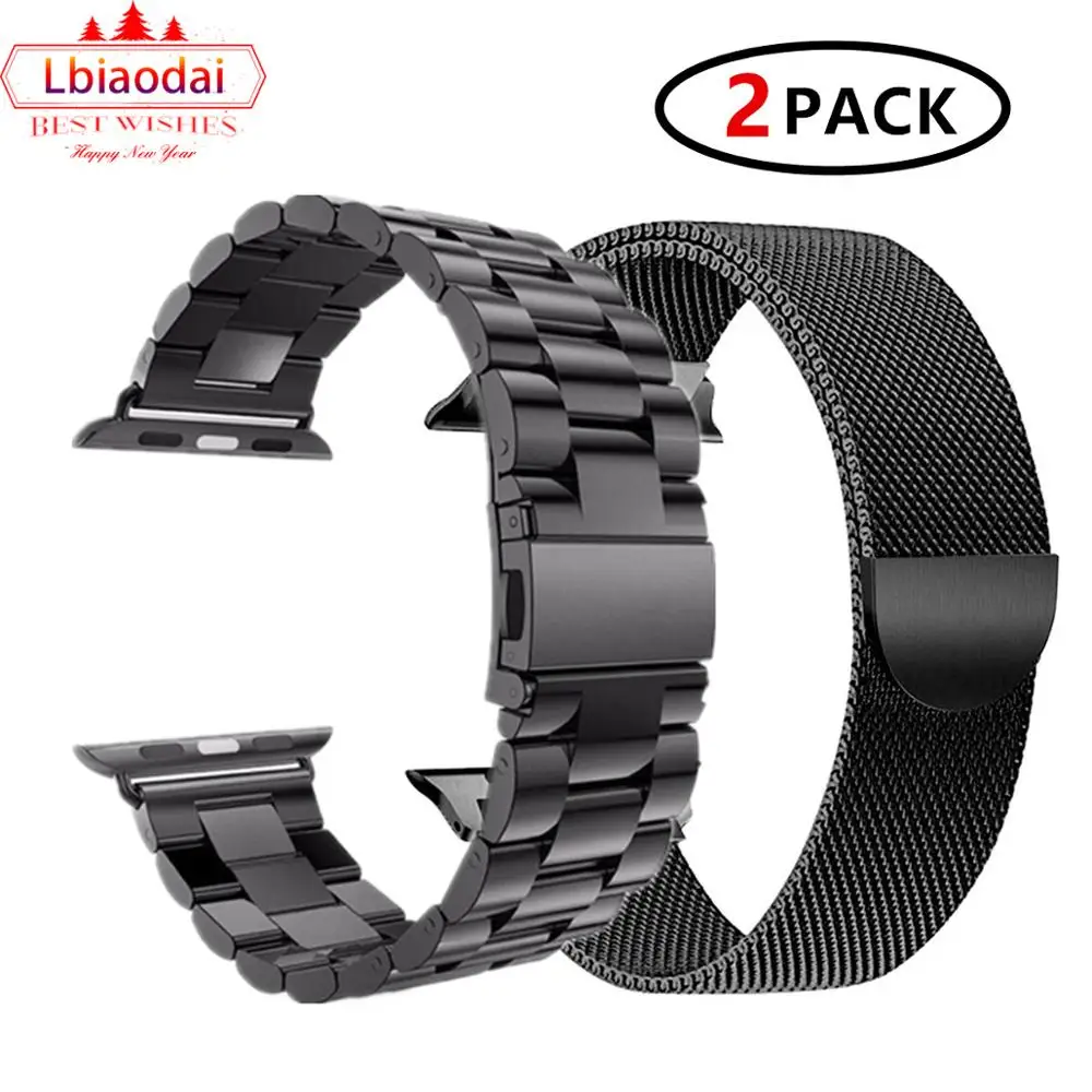 2 шт. ремешок для Apple watch band 44 мм 40 мм iWatch band 42 мм 38 мм браслет из нержавеющей стали + Миланская петля Apple watch 4 3 2 1 42
