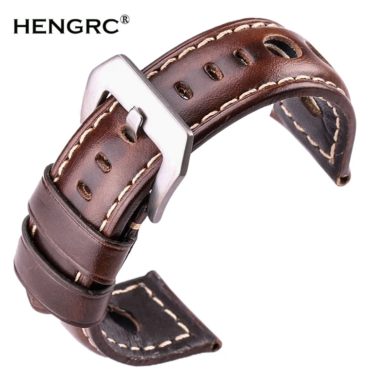 HENGRC 4 цвета аксессуары для часов Ремешки для наручных часов винтажные часы из натуральной кожи ремешок с пряжкой из нержавеющей стали 20 мм 22 ...