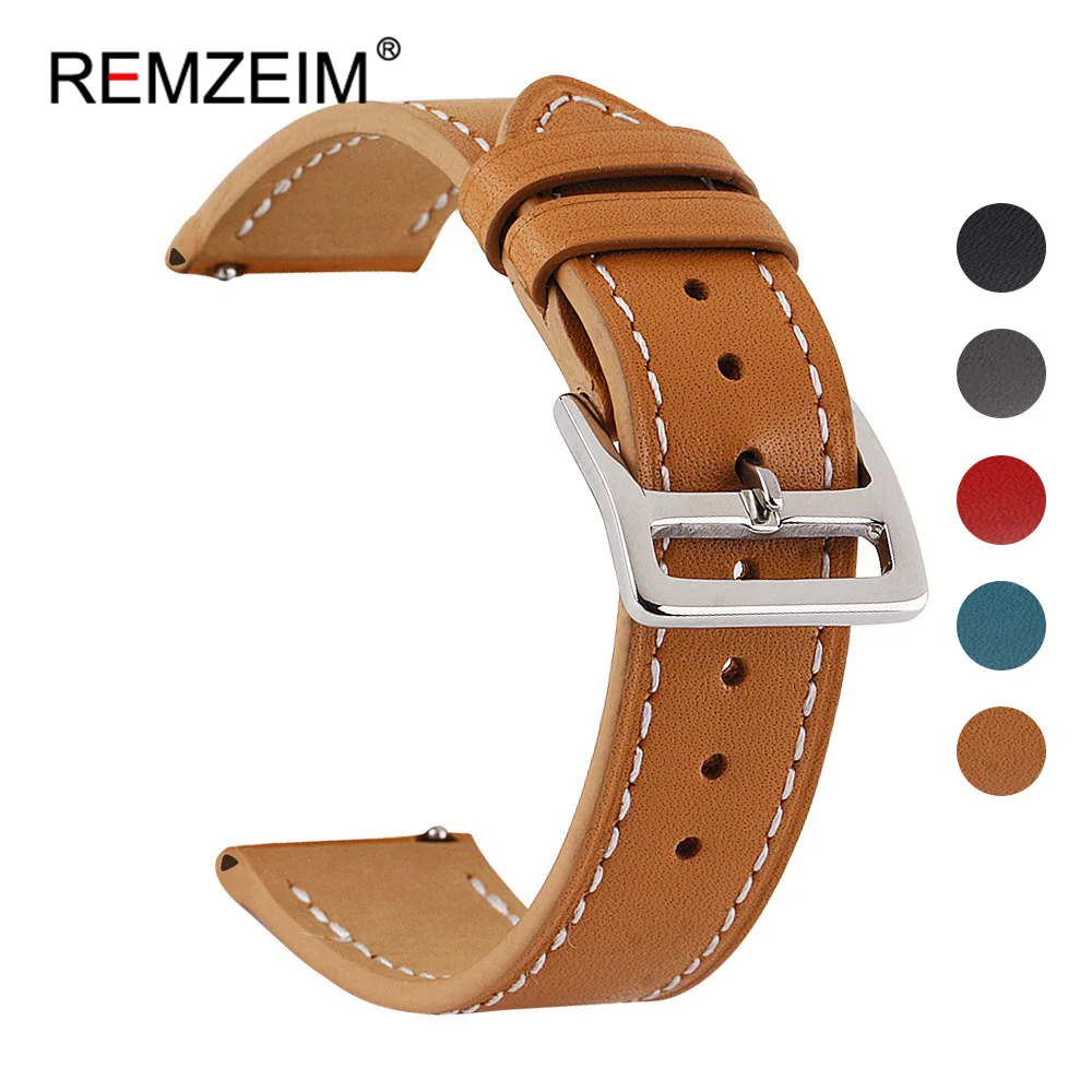 Кожаный ремешок для часов 18 20 22 24 мм для Samsung Galaxy Watch Active2 S2 S3 Amazfit Huawei GT 2 быстросъемный браслет ремешок