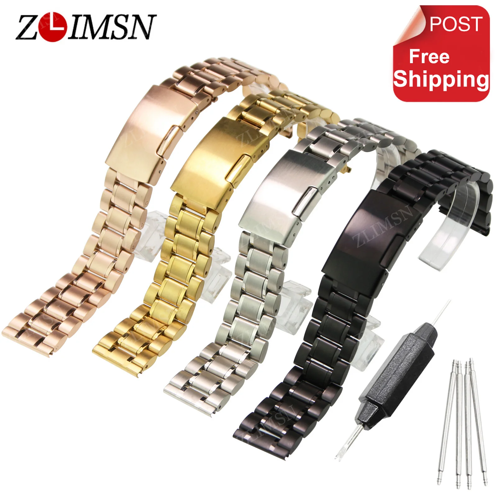 Ремешок для часов ZLIMSN из нержавеющей стали 316, серебристый, черный, розовый, золотой, ремешок для часов, браслет для мужчин, ремешок для часов 18, 20, 22, 24 мм, Relojes Hombre
