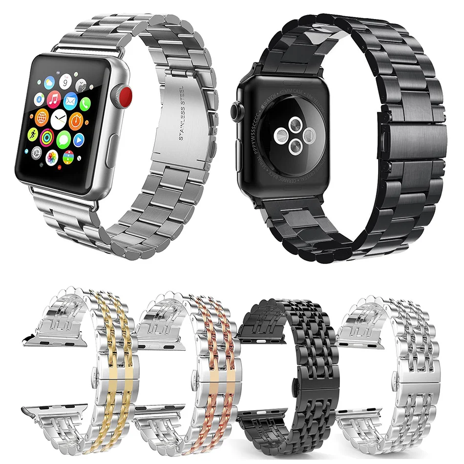 Из металла группа совместимы для Apple Watch полосы серии 4 40 мм 44 мм Нержавеющая сталь браслет ремешок для iWatch 1/2/3 38 мм 42 мм для мужчин