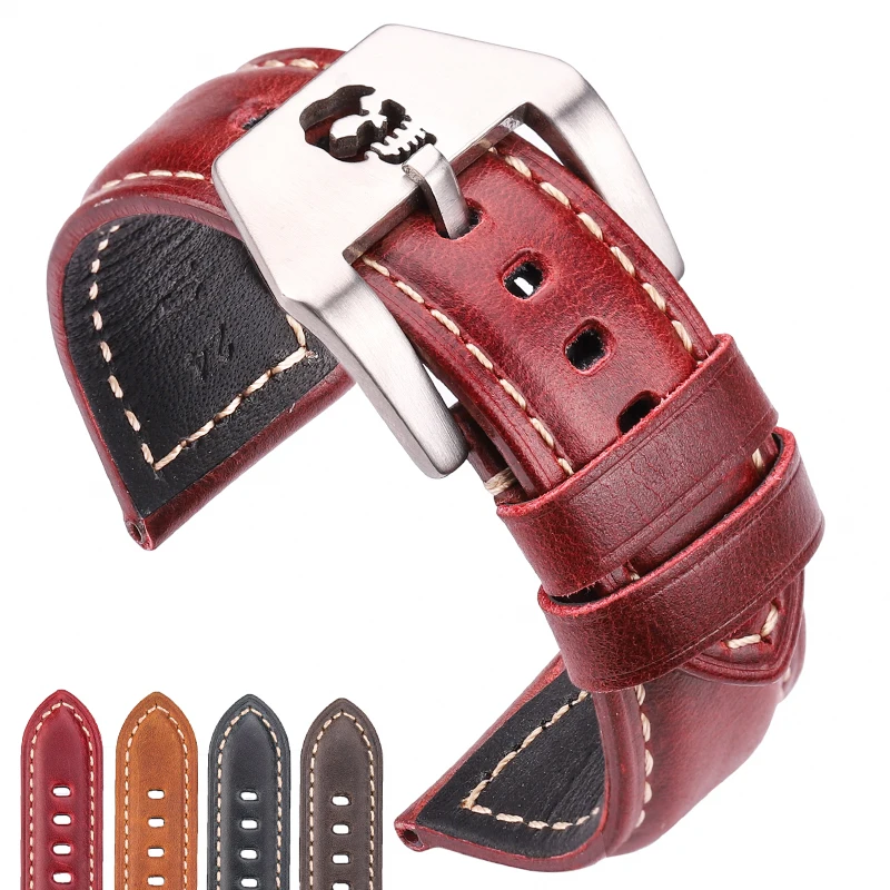 Ручной ремешок для часов 22 мм/24 мм/26 мм коричневый, синий, зеленый, красный, кожаный, для наручных часов ремешок Пояс Нержавеющая сталь череп ...